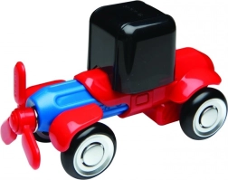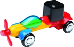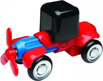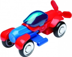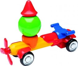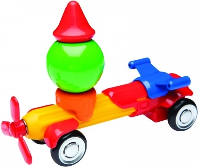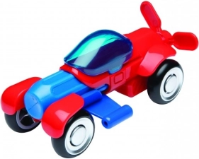 Set sadrži oblike s kojima se lako slažu jednostavni modeli vozila – od automobila do zrakoplova. Idealno za prve građevne uspjehe.