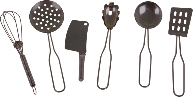 Sadrži razno kuhinjsko posuđe uključujući nehrđajuće lonce, tave i zdjele za realističnu igru.