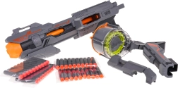 Predstavljamo Mega Blaze Storm sivu pušku, idealan izbor za djecu i mlade koji traže zabavu u sci-fi stilu. Ova igračka je opremljena s 40 metaka koji se lako umeću u bočni spremnik. Puška nudi: