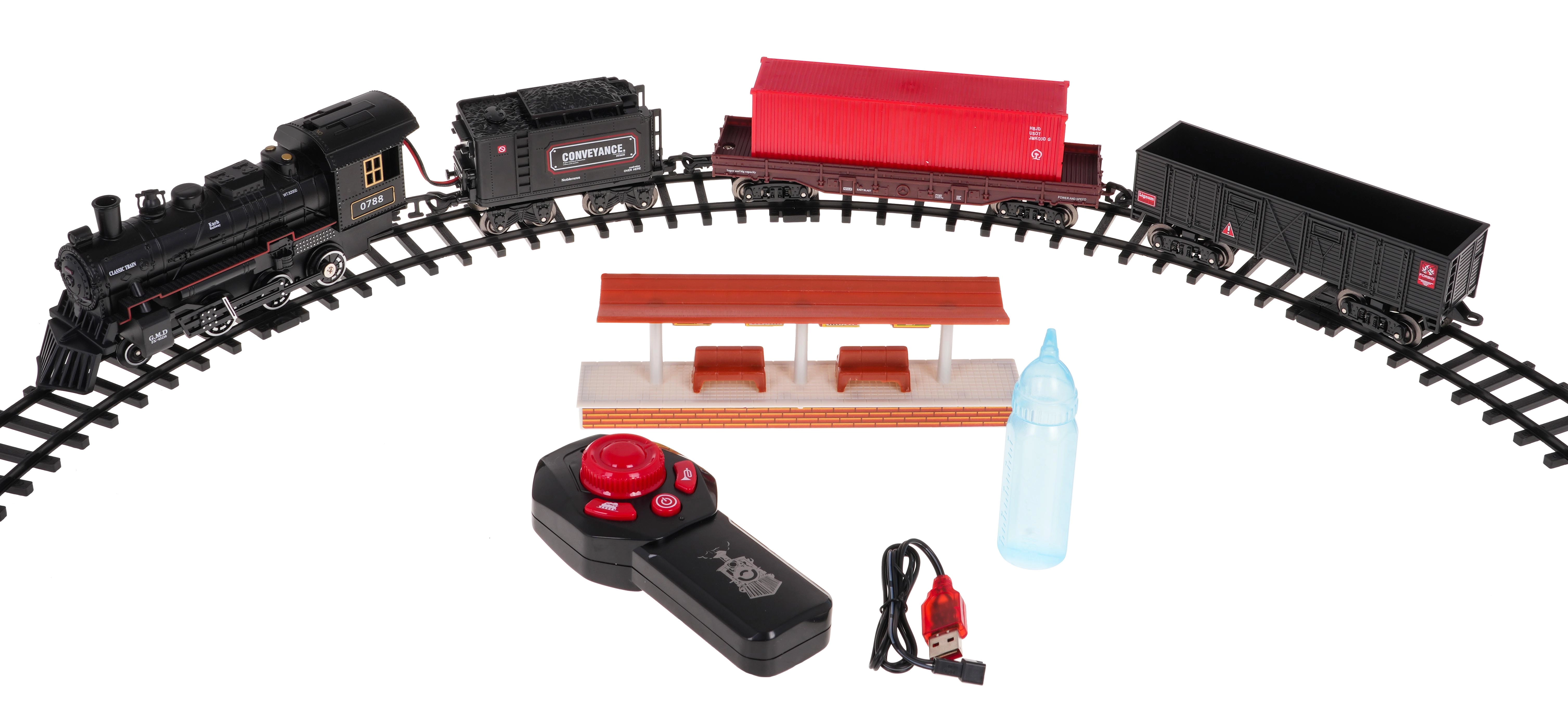 Uživajte u vožnji s ovom retro daljinski upravljanom tračnicom!Ovaj metalni retro vlak-set nudi integriranu funkciju dima i realistične zvučne efekte. Odličan izbor za djecu od 5 godina.