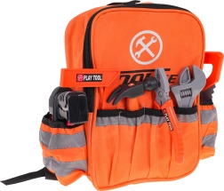 Narančasti ruksak s više džepova za pohranu igračaka. Lako prenosiv i prikladan za ulogu malog majstora.