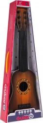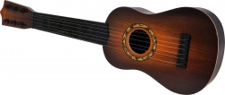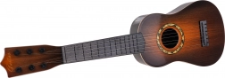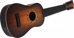 Ova klasična dječja gitara u tamnosmeđoj izvedbi vjerno oponaša pravi instrument. Ima šest metalnih žica i funkcionalne mehanizme za osnovno ugađanje, pa djetetu pruža autentičan doživljaj svirke i potiče razvoj ritma i sluha.