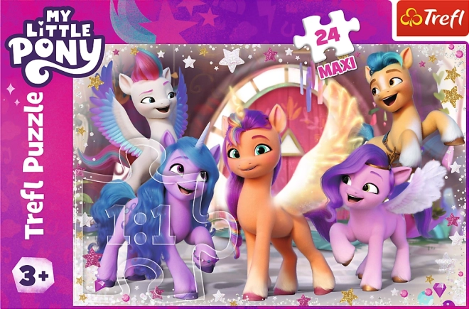 Otkrijte zabavu u svijetu MY LITTLE PONY. Ove puzzle 24 Maxi osmišljene su za male ruke – veći dijelovi lako se drže, spajaju i razvijaju finu motoriku, koncentraciju te prepoznavanje boja i oblika. Nakon slaganja dobit ćete živopisnu, šarenu sliku omiljenih ponija dimenzija 60 × 40 cm.