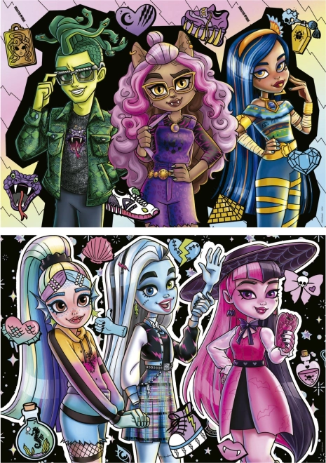 Otkrijte čar slaganja s dvodijelnim setom puzzli Educa. Svaka slagalica ima 100 dijelova i nakon slaganja mjeri približno 40 × 28 cm. Motivi iz omiljenog svijeta MONSTER HIGH razveselit će male i veće graditelje.