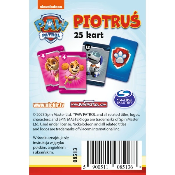 Kartaška igra Piotruś s motivom PAW PATROL-a brenda Trefl donosi brzu i zabavnu igru za djecu od 4 godine. Jednostavna pravila, omiljeni likovi i razvoj pažnje i koncentracije čine ovu igru izvrsnim izborom za obiteljske trenutke i putovanja.