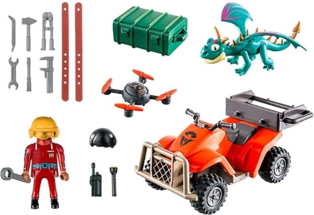 - Sadržaj seta: figurica Phil Baker, zmaj Strašni teror, četverokotač (ATV) s povratnim mehanizmom, dron, set alata i dodaci.