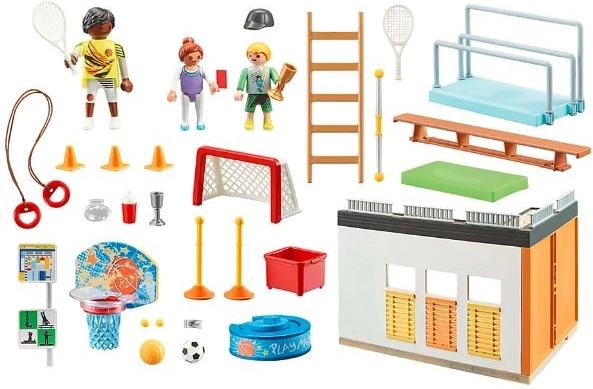 Ovaj prošireni set CITY LIFE donosi u dječju sobu autentičnu sportsku atmosferu. U dvorani se nalaze obruč za košarku, raznolika sportska oprema te stalci i police za pregledno odlaganje. Idealan za kreativnu igru, razvoj motorike i timska natjecanja.
