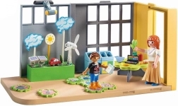 Sastavni dio su kante za razvrstavanje otpada, biljke, ekološke dekoracije, elementi “zelene” infrastrukture i školska oprema. Set je kompatibilan s ostalim PLAYMOBIL građevnim setovima (npr. proširenja učionica), pa ga lako povežite u veći školski svijet.
