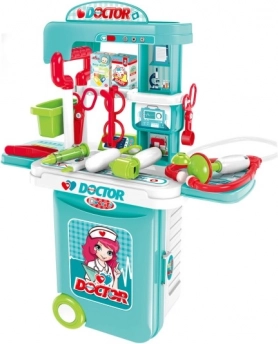 Medicinski set 3u1 nudi odličnu zabavu za djecu koja vole igrati ulogu liječnika. Zahvaljujući praktičnom koferu na kotačima, možete ga nositi sa sobom bilo gdje.