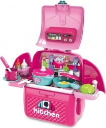 Naš Kuhinjski set u ruksaku nudi djeci bezbroj sati zabave i omogućuje im oponašanje svakodnevnih aktivnosti. Ovaj praktični ruksak, koji se lako pretvara u stolnu kuhinjicu, idealan je za igru kod kuće i na putu. Sadrži niz dodataka koji djeci olakšavaju kuhanje i pečenje. Ovaj razigrani set potiče razvoj socijalnih vještina i kreativnost. Zbog kompaktne veličine 24×15×27 cm, lako je prenosiv i djeca ga mogu uvijek imati sa sobom.