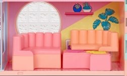Kućica je u pastelnim nijansama i uključuje različite sobe i dodatke za savršenu igru.