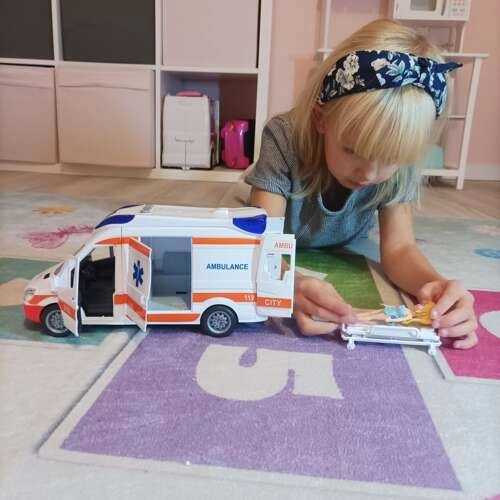 Ambulanta potiče razvoj mašte, društvenu igru i učenje o radu spasilaca te osnovnim načelima prve pomoći. Zahvaljujući kompaktnim dimenzijama pogodna je za dječju sobu i za putovanja, a odmah nakon raspakiravanja spremna je za akciju – AA baterije su uključene u pakiranje.