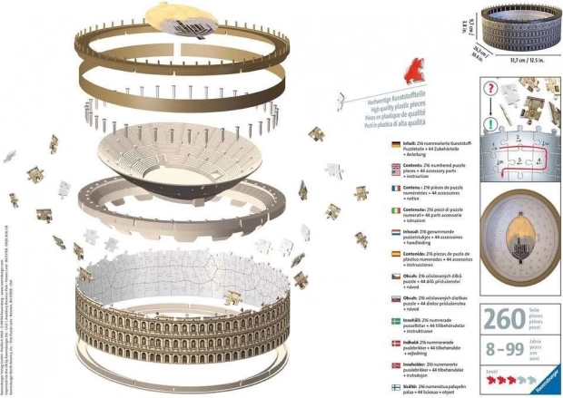 Volite slagati puzzle i tražite novi izazov? Uz model slavnog rimskog amfiteatra RAVENSBURGER doživjet ćete sate zabave zahvaljujući posebnim plastičnim dijelovima s tehnologijom Easyclick.