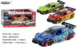 Metalni trkaći auto s dimenzijama 11x4,5x3,2 cm nudi zabavu na povratno navijanje u tri boje varijante - zelena, crvena i plava.