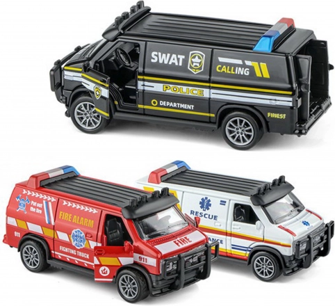 Odaberite jednu od tri originalne varijante ovog metalnog autića: policija, hitna pomoć ili vatrogasci. Svako vozilo ima detaljnu izvedbu i kvalitetnu metalnu konstrukciju. Zahvaljujući sustavu navijanja unatrag, autić se nakon svakog puštanja brzo vraća na startnu crtu!