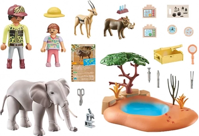 Otkrijte održivu liniju PLAYMOBIL WILTOPIA s setom za igru „Ekspedicija do pojilišta“. Djeca će susresti afričkog slona, gazelu i bradavičastu svinju (vjevericu), istražiti pojilište i uz priložene „testne trakice“ isprobati ispitivanje kvalitete vode. Slon može surlom zahvaćati i raspršivati vodu. Set potiče učenje kroz igru i obzirnost prema prirodi – izrađen je od više od 80 % recikliranih materijala.