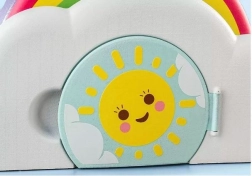 Duga kao ljuljačka i zvečka, vratašca koja se otvaraju, puzzle elementi (kišne kapljice), podesivi dužični kamenčići