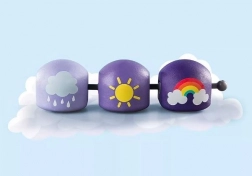 Komponente imaju zaobljene oblike i veličinu idealnu za male ruke. Igra potiče finu motoriku (umetanje, pomicanje, spajanje i razdvajanje dijelova), jezične vještine (imenovanje sunca, kiše, duge) te kreativno razmišljanje zahvaljujući različitim kombinacijama slaganja.