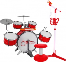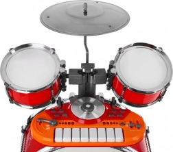 Ovaj veliki dječji glazbeni set u crvenoj izvedbi spaja realistične bubnjeve s elektroničkom klavijaturom i mikrofonom na stalku. Djeca mogu sigurno svirati zahvaljujući mekanim vrhovima palica koji štite bubnjeve, te uživati u svjetlosnim efektima i bogatim funkcijama klavijature. Set je idealan za prve glazbene korake, razvoj ritmike i kreativnosti.