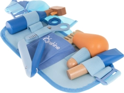 Predstavljamo drvenu set za frizerske, koja sadrži sve neophodne alate za vaše malo frizera. Svaki alat je pažljivo dizajniran kako bi bio siguran i izdržljiv. Set uključuje podesivi remen s raznolikim džepovima za organizaciju alata.