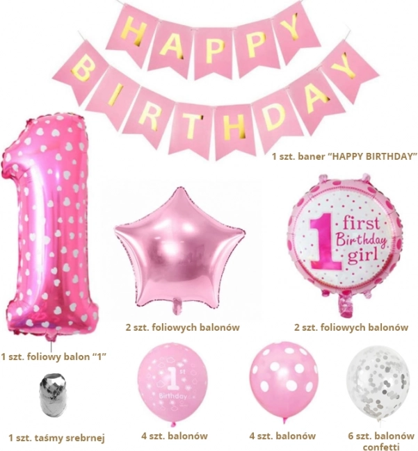 Set rođendanskih balona omogućuje vam da ukrasite dječju rođendansku proslavu i stvorite posebnu i jedinstvenu atmosferu. Zahvaljujući originalnoj dekoraciji, proslava će biti nezaboravna ne samo za slavljenicu nego i za sve sudionike. Set rođendanskih balona idealan je za proslave u zatvorenom i na otvorenom. Set stvara prekrasnu pozadinu za fotografije za uspomenu i pruža djeci mnogo zabave.