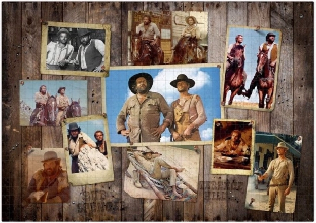 Slagalica Bud Spencer & Terence Hill: Western sjajan je način da se prisjetite nezaboravnih filmskih scena. Sadrži 1000 dijelova, a dimenzije 68 × 48 cm nakon sastavljanja pružaju dovoljno prostora za detaljan prikaz kultnih trenutaka. Nakon dovršetka služi kao lijepa dekoracija za zid koja će oživjeti vaše uspomene.