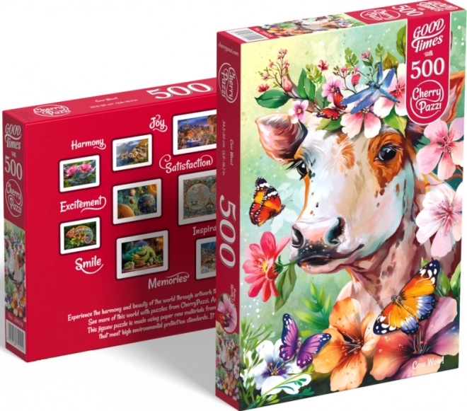 Puzzle CHERRY PAZZI s motivom 'Wow, krava!' donosi iskustvo kreativnosti i zabave za svakoga. S 500 komada idealno je za srednje napredne slagatelje koji uživaju u procesu slaganja i konačnom pogledu na gotovu sliku.