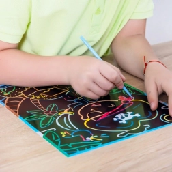 Strugalica Pirat od DODO-a sjajan je način da se djeca zabave na duge sate. Ispod crnog sloja krije se šarena podloga koju otkrivaju struganjem. Ova aktivnost potiče strpljenje i razvoj kreativnosti. Zahvaljujući priloženoj strugalici djeca mogu stvoriti živopisne ilustracije koje će oduševiti svakog malog umjetnika.