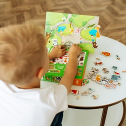 Ova magnetska igra izvrstan je dar za djecu koja žele upoznavati životinje na razigran način. Stvarajte scene iz zoološkog vrta, imenujte životinje i pustite mašti na volju.