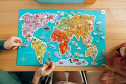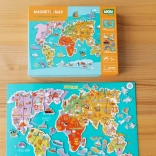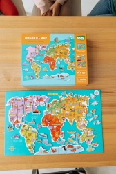 Otkrijte zabavan i edukativan način kako djecu naučiti o svijetu oko nas. Magnetska karta svijeta sadrži 145 dijelova koji se lako pričvršćuju na magnetsku podlogu i stvaraju kompletnu sliku svijeta.