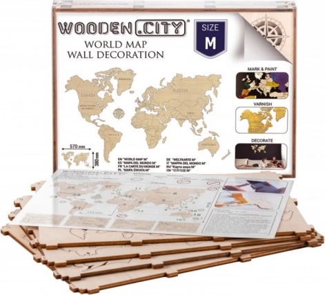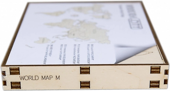 Stilska zidna drvena karta svijeta veličine M brenda WOODEN CITY idealna je kao dizajnerska dekoracija i originalan poklon za ljubitelje putovanja. Od kvalitetne brezove šperploče, precizno laserski izrezana, lako se pričvršćuje pomoću dvostrane trake i pretvara vaš dom ili ured u svijet uspomena.