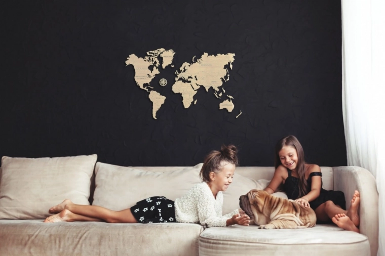 Karta služi kao stilska zidna dekoracija, a ujedno pomaže djeci i odraslima bolje se snalaziti u svjetskoj geografiji.