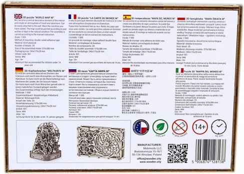 Karta je sjajna za bilježenje doživljaja – posjećena mjesta možete obojiti ili u drvo zabosti pribadače s zastavicama. Zahvaljujući laganoj razini težine sastavit ćete je za otprilike sat vremena, bilo kod kuće ili u uredu.