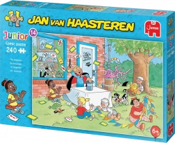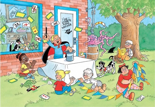 Uđite u svijet šala i boja s JUMBO puzzlama iz kolekcije Jan van Haasteren Junior. Svaki dio vodi do novih duhovitih otkrića, od ikonične peraje morskog psa do nenametljivih likova i iznenađujućih situacija. Motiv Mađioničar donosi dinamičnu i zabavnu scenu koja će razveseliti djecu i odrasle.