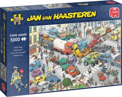 Otkrijte svijet duhovitih ilustracija Jana van Haasterena – šarolik, dinamičan i do najsitnijeg detalja razrađen. Motiv Prometni kaos prepun je gegova, izvrnutih situacija i iznenađenja koja će vas nasmijati pri svakom novom pogledu. Zahvaljujući 3000 dijelova, riječ je o sjajnom izazovu za iskusnije slagatelje ili kao obiteljski projekt.