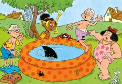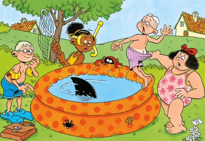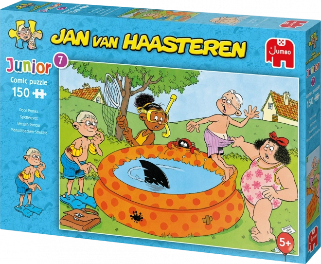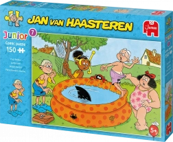 Uronite u lude scene iz izdanja Junior – Nestašluci kod bazena autora, legendarnog karikaturista JAN VAN HAASTEREN. Tipični potpisni motivi poput peraje morskog psa, neočekivanih ruku bez vlasnika, zubne proteze, Svetog Nikole te autorovog autoportreta pretvaraju slaganje u avanturu traženja punu smijeha.