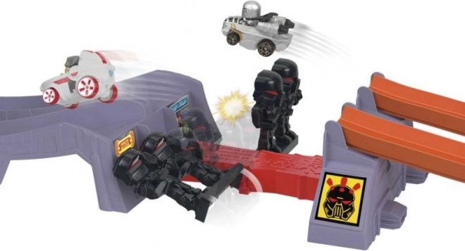 Doživite uzbudljive utrke u svijetu HOT WHEELS RACERVERSE i STAR WARS. Pokrenite aute Grogu i Mandalorian s vrha staze, proletje kroz kapije nalik svjetlosnim mačevima i pogledajte tko će prvi preskočiti prepreku sa stormtrooperima i projuriti kroz cilj. Idealan poklon za obožavatelje od 4 godine naviše.