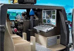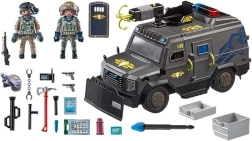 Na krovu vozila nalazi se kupola iz koje se može ispaliti kuka ili vodena strijela. Ovaj bogato opremljen set s rasvjetom i zvučnim efektima nudi dugotrajnu zabavu i idealan je dodatak za sve obožavatelje PLAYMOBIL policije.