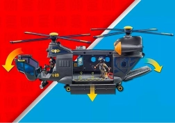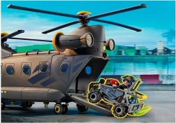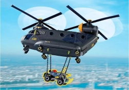 S Playmobil helikopterom i njegovim vitlom spasilačke misije u zraku prava su igra za specijalnu jedinicu. Kokpit prima dvije figurice, dok teretni prostor ima još dva sjedala za dodatne figurice. Integrirani svjetlosni i zvučni modul aktivira se pokretom rotora. Osjetljiv teret može se osigurati remenom, a dodatni se može pričvrstiti pomoću transportnih lanaca. Spasilački helikopter može se otvoriti s četiri strane za jednostavno igranje.