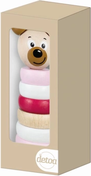 Drvena piramida s medvjeđom glavom u pastelnim bojama više je od igračke — to je alat za razvoj djece. Izrađena je od masivnog drva, što jamči njezinu izdržljivost i dugotrajnost. Sastoji se od osam dijelova, koji djecu uče prepoznavanju boja i oblika. Ima ergonomičan dizajn s kružnim oblicima i zaobljenim rubovima, prilagođena je malim dječjim rukama i potiče osjet dodira.