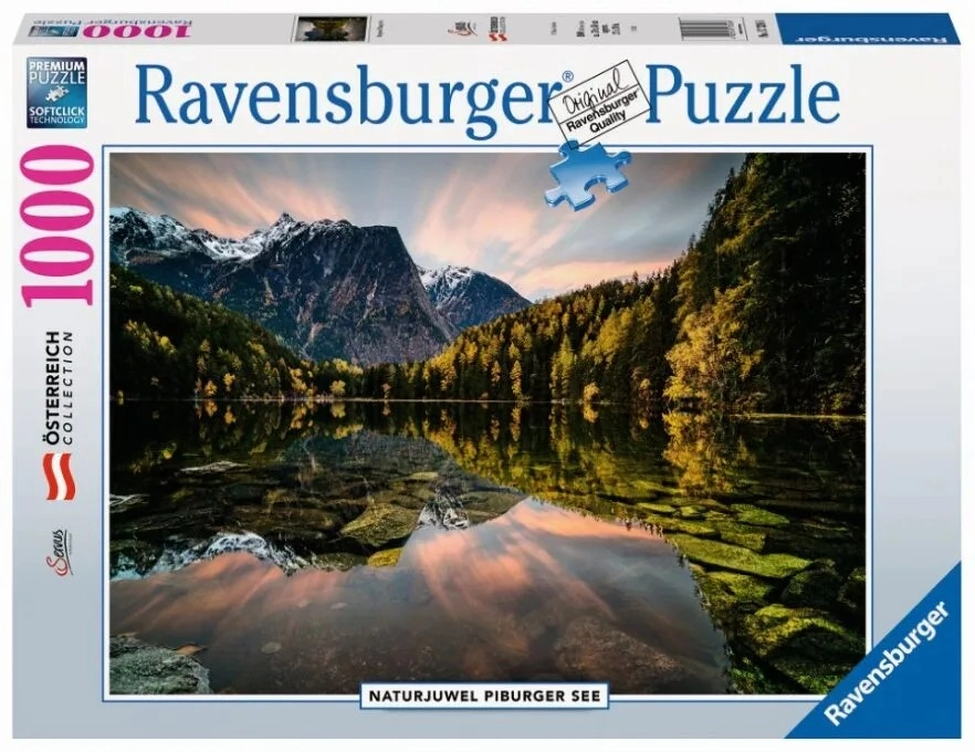 Uronite u svijet slagalica s premium puzzlama Ravensburger i stvorite prekrasnu sliku mirnog jezera Piburger. Antirefleksna površina s lanenom teksturom osigurava jasne boje bez neželjenih odsjaja i ugodno slaganje čak i pri umjetnom svjetlu.