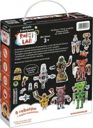 Kreativna slagalica Robot Lab donosi beskrajne mogućnosti slaganja. Osnovu čini 63 visokokvalitetnih, sjajnih i precizno izrezanih dijelova koji zahvaljujući pametnom oblikovanju i ilustracijama savršeno međusobno odgovaraju. Djeca najprije slažu 8 velikih robota, a zatim uz pomoć „zamjenskih” dijelova mijenjaju njihov izgled – ili stvaraju potpuno nove likove i strojeve.