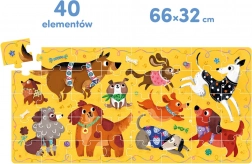 CzuCzu Puzzle Hau Psići nudi ne samo zabavno slaganje, već također razvija finu motoriku i maštu djece. Šareni i veliki slagalica sadrži 40 dijelova i predstavlja 10 simpatičnih pasa spremnih za igru! Slaganje puzzli omogućuje djeci prepoznavanje oblika i boja, razvijanje mašte i učenje koncentracije. Rad s puzzlama također umiruje i uči strpljenju.