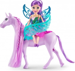 Otkrijte očaravajući duo vile i njezina jednoroga, idealan za kreativne priče o magiji i avanturama. Lutkica ima dugu ljubičastu kosu koja se može češljati i stilizirati, sjajni outfit i pokretne udove za poziranje. Jednorog s podesivim krilima i pletenom grivom poziva na fantastične vožnje.