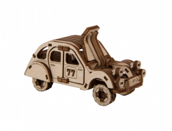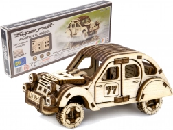 Ovaj model rally automobila nudi privlačnu kombinaciju kreativne zabave i elegantne dekoracije za interijer. Dijelovi od prvoklasne brezine šperploče precizno se uklapaju – bez ljepila i vijaka – a rezultat je impresivan retro automobil s mnoštvom sitnih detalja.