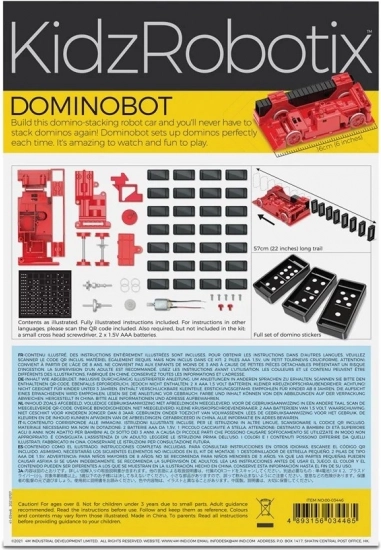 Edukativni set Dominobot provest će vas kroz svijet jednostavne robotike i fizike. Sastavite auto-robota koji slaže domino, spojite osnovni električni krug, ukrasite pločice naljepnicama i promatrajte kako se cijeli niz pločica s efektom domino elegantno ruši. Idealno za razvoj kreativnosti, strpljenja i logičkog razmišljanja.