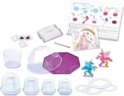 Otkrijte čaroliju kemije i prirode u jednom zabavnom setu. Djeca mogu korak po korak pratiti kako kristali rastu i stvoriti vlastiti magični terarij s motivom jednoroga. Uzgoj traje otprilike 4–7 dana te potiče strpljenje, znatiželju i finu motoriku.