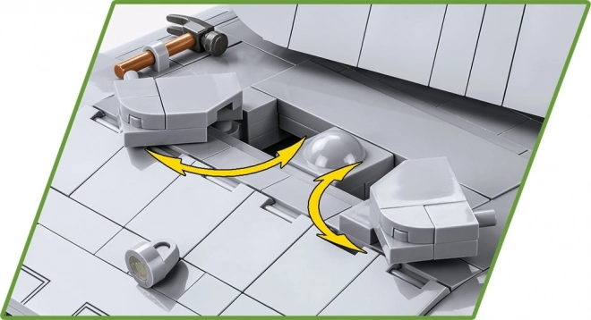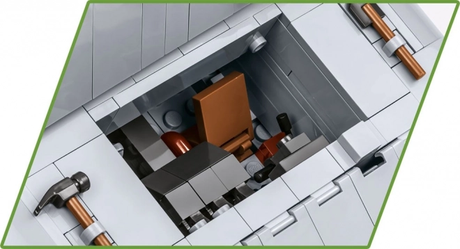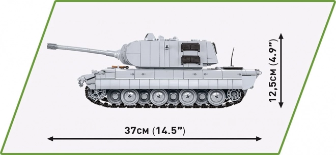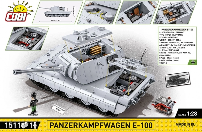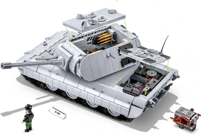 Ovaj detaljan model iz serije povijesnih konstruktorskih setova prikazuje njemački prototip PANZERKAMPFWAGEN E‑100 s kraja Drugog svjetskog rata. Zahvaljujući velikom mjerilu razrađen je i interijer – otvorite servisni pokrov, izvadite motor i zavirite u kupolu. Realistične funkcije, poput rotirajuće kupole, elevacije topa i radnih gusjenica, čine model atraktivnim eksponatom i igrivom građevinom.