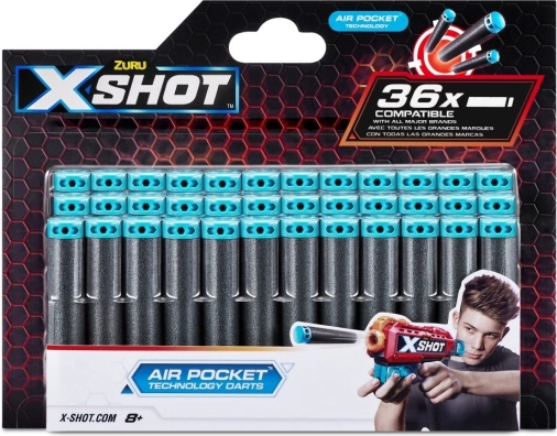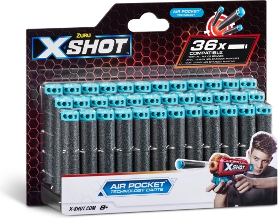 Napunite spremnik svog bacača igračaka najboljom municijom! Ovaj set od 36 strelica od lagane i izdržljive pjene jamči dugu zabavu. Nema više gubljenja vremena čestim punjenjem! Vidjet ćeš kako pobjeđuješ u pucnjačkom dvoboju dok god tvoj bacač još ima metaka! Set Excel Air Pocket Technology Foam Darts sadrži 36 projektila kompatibilnih s većinom vodećih marki.