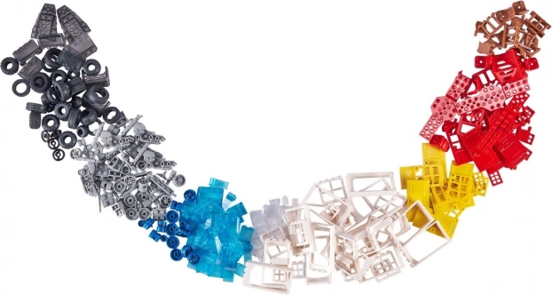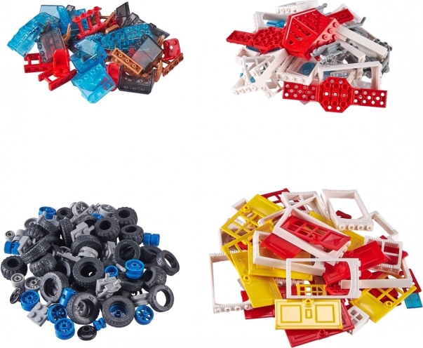 - Sadrži 250 dijelova pogodnih za gradnju kuća i vozila: vrata, prozori, dijelovi krova, osovine, karoserije i kotači.